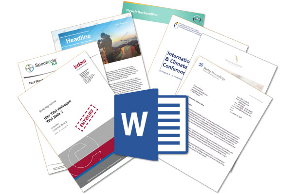 Mit großer Genauigkeit setzen wir Designvorgaben in MS Word-Dokumentvorlagen um und bleiben dabei so nah wie möglich an den Funktionen, welche die Anwendung von sich aus bietet.
